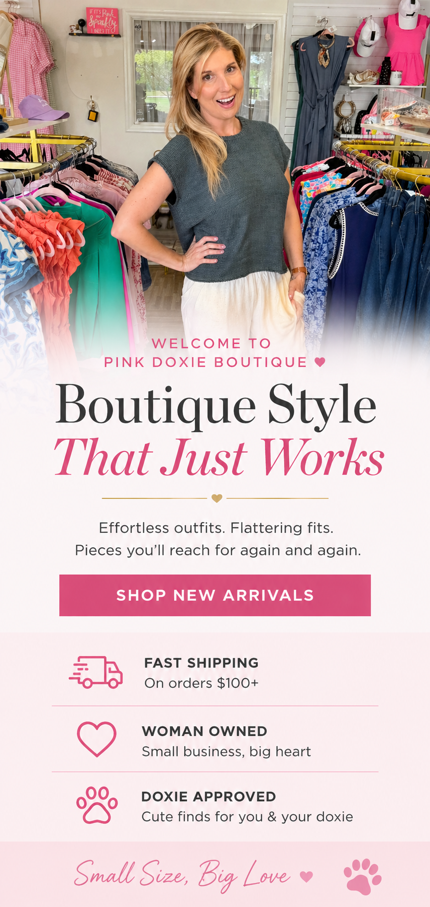 This is a great place to find happy fun outfits. Everything is darling and affordable. Everyone is helpful at this boutique. You may walk in as a stranger but will find friends inside!
