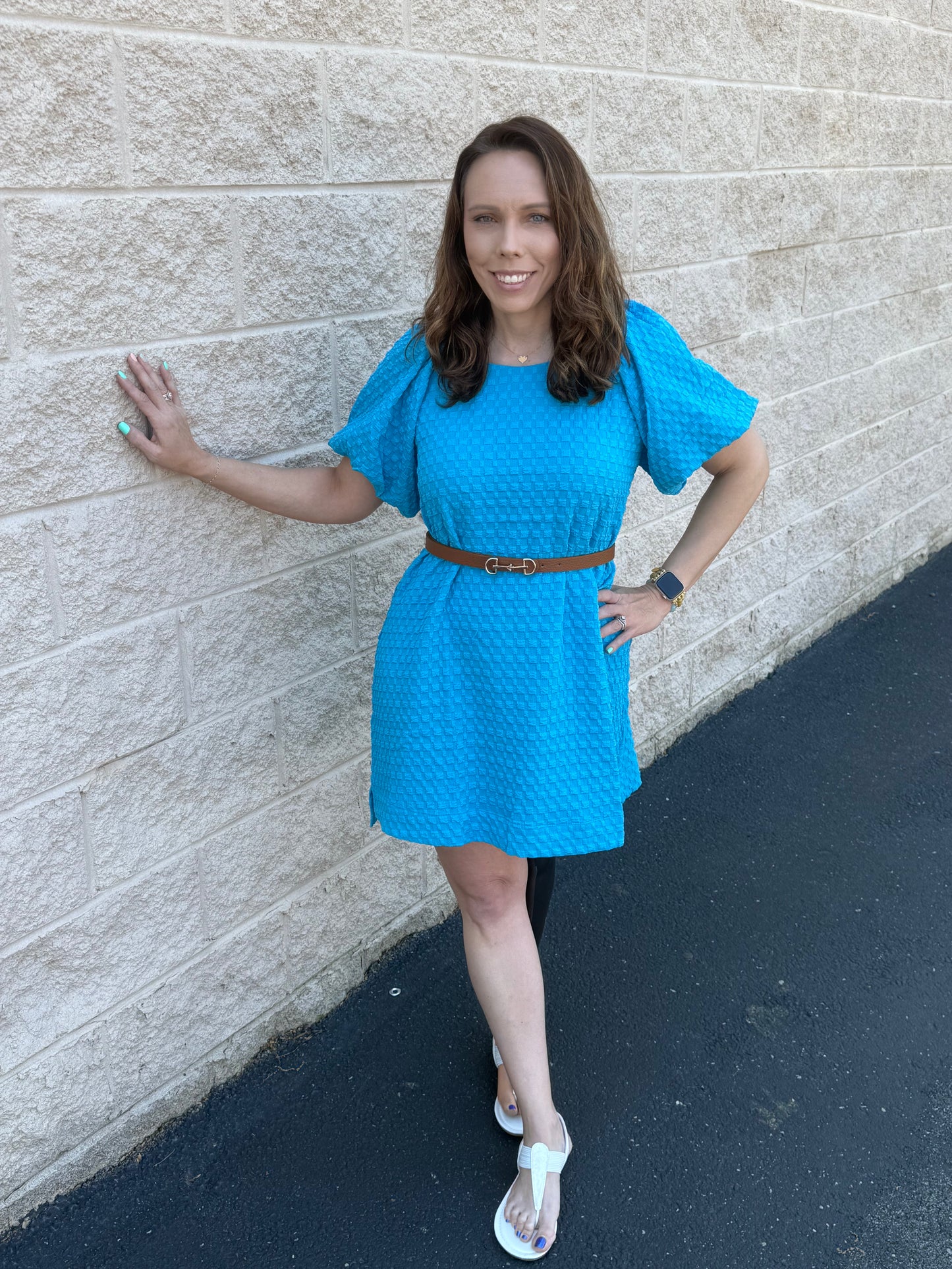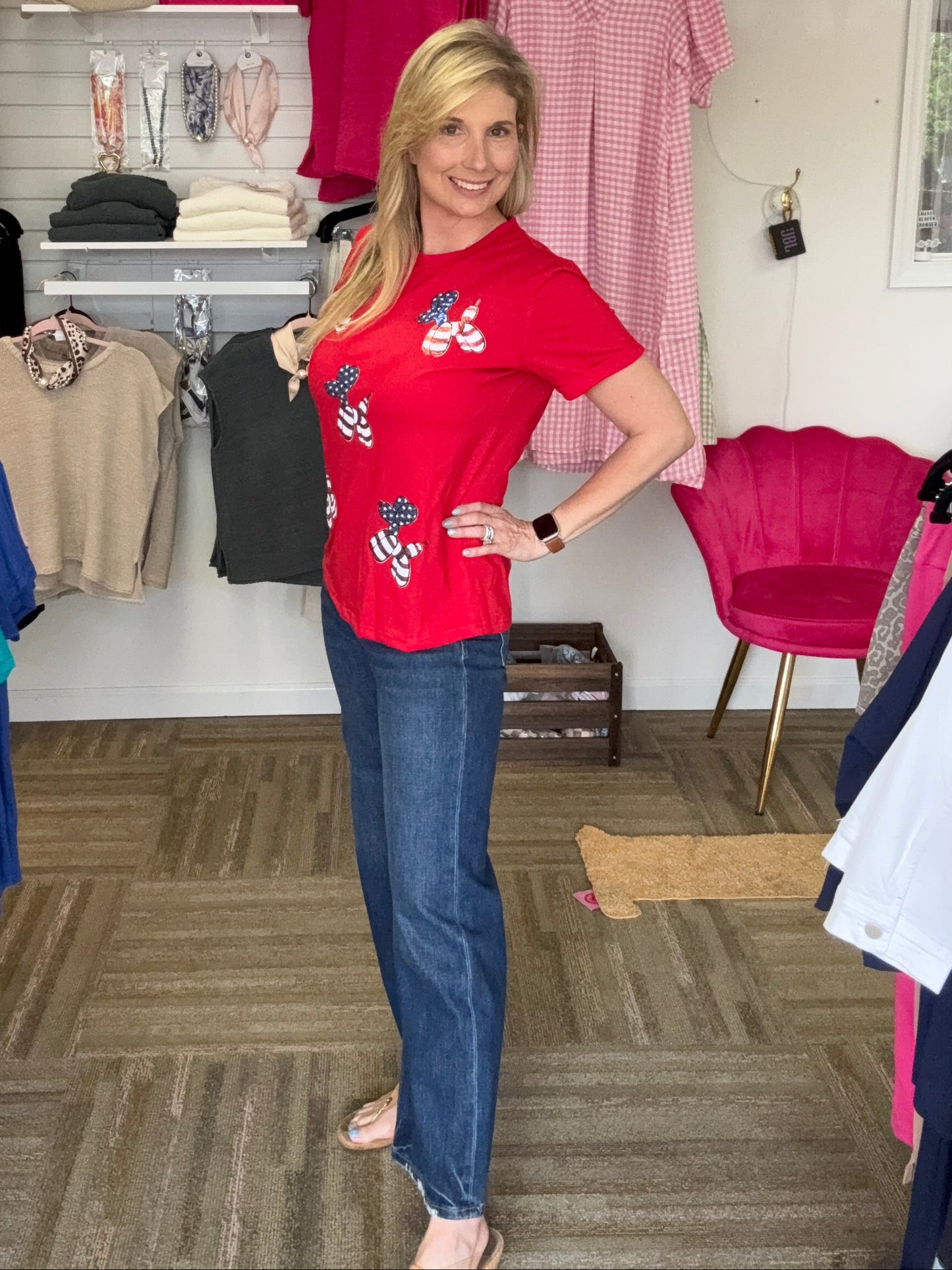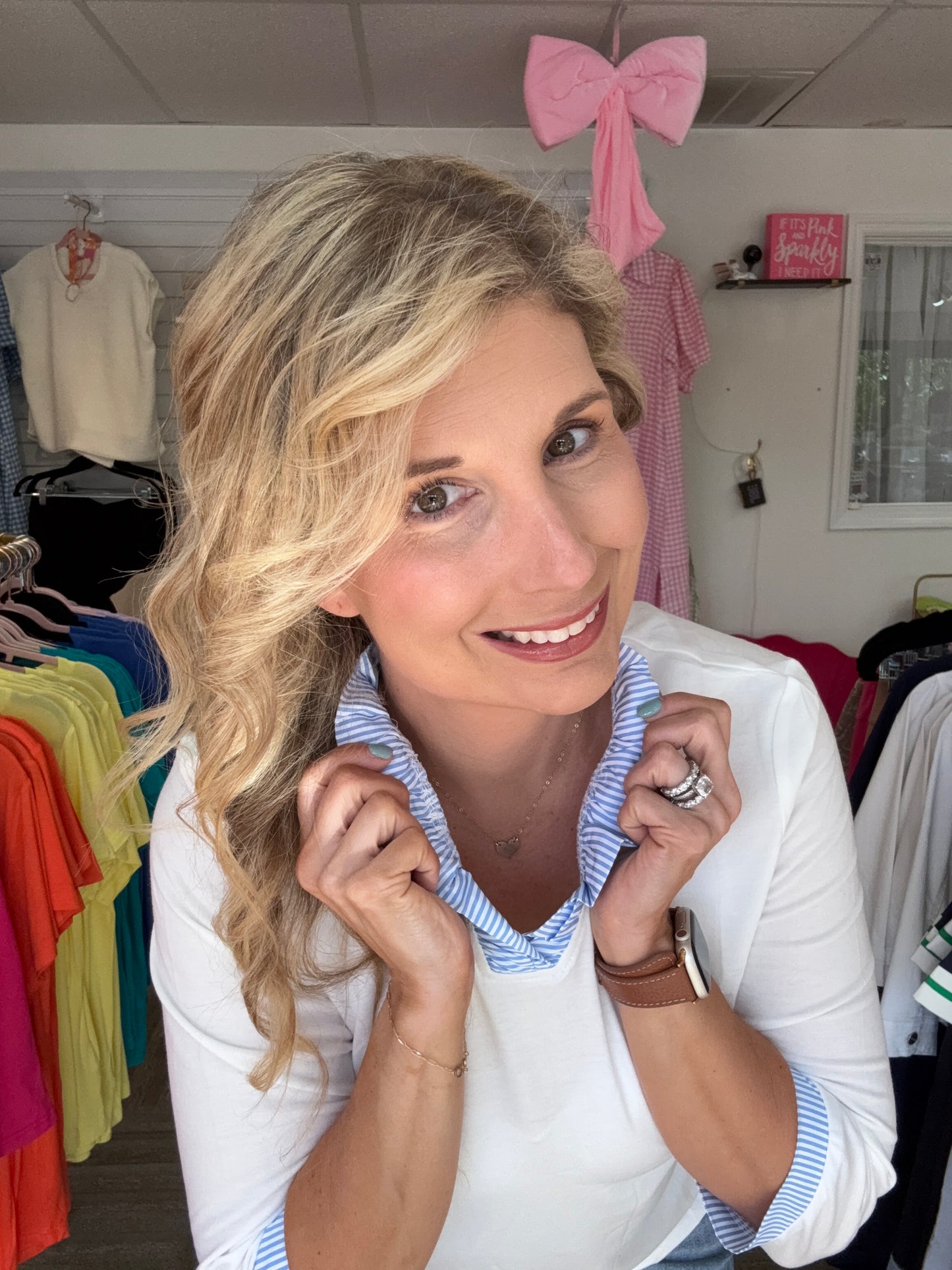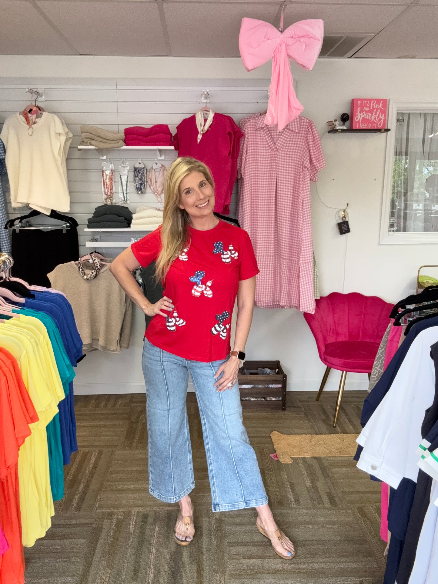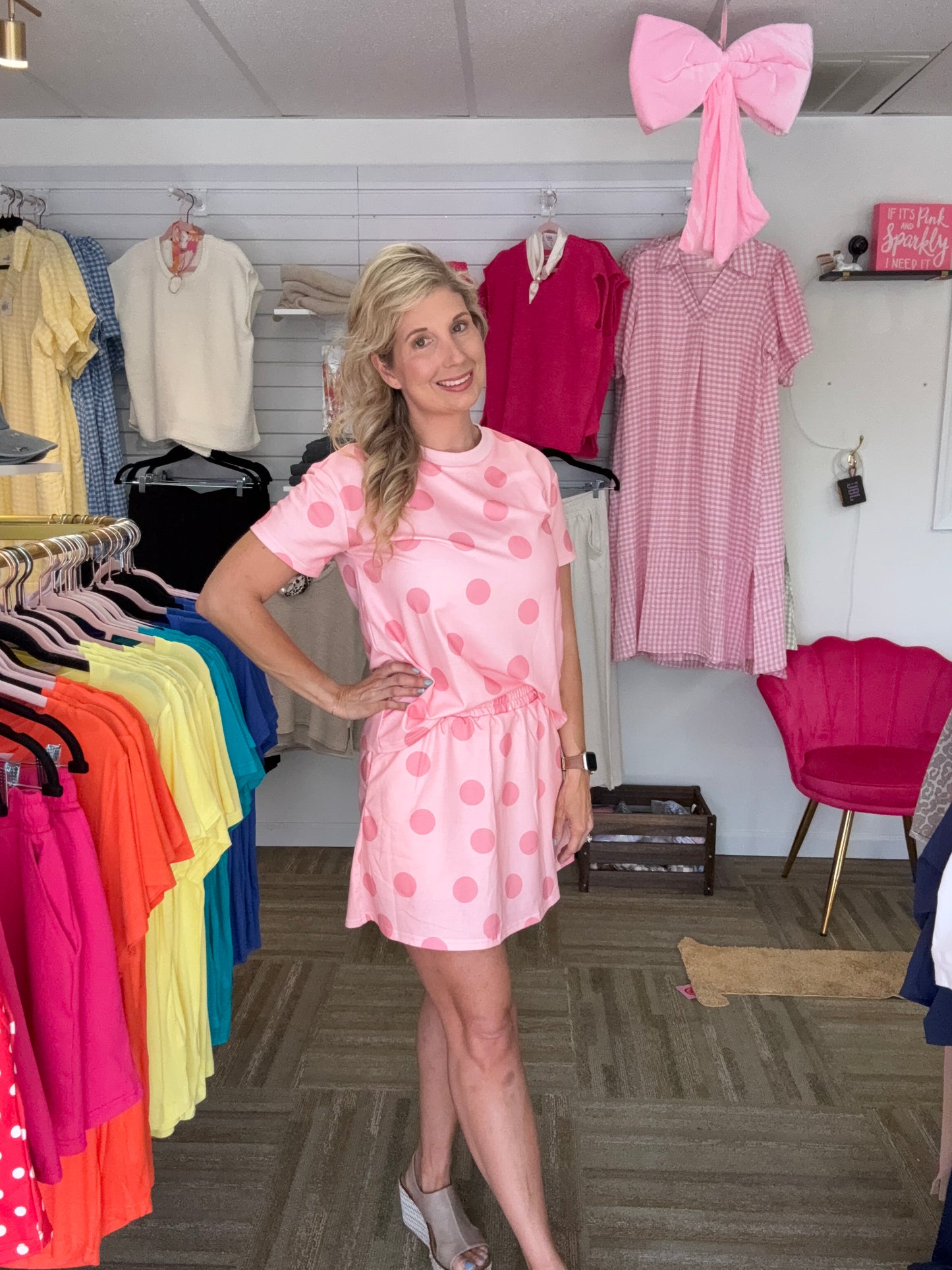 Navy Polka Dot Ribbed V-Neck Top with Back Bow Detail