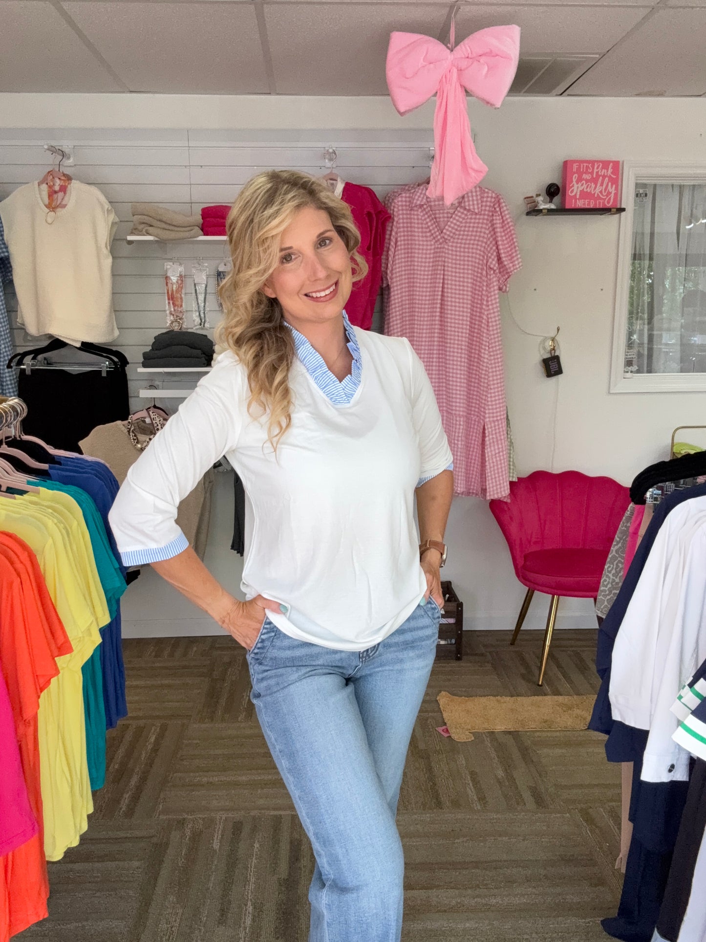 Wisteria Relaxed V-Neck Plus Size Waffle Knit Top
