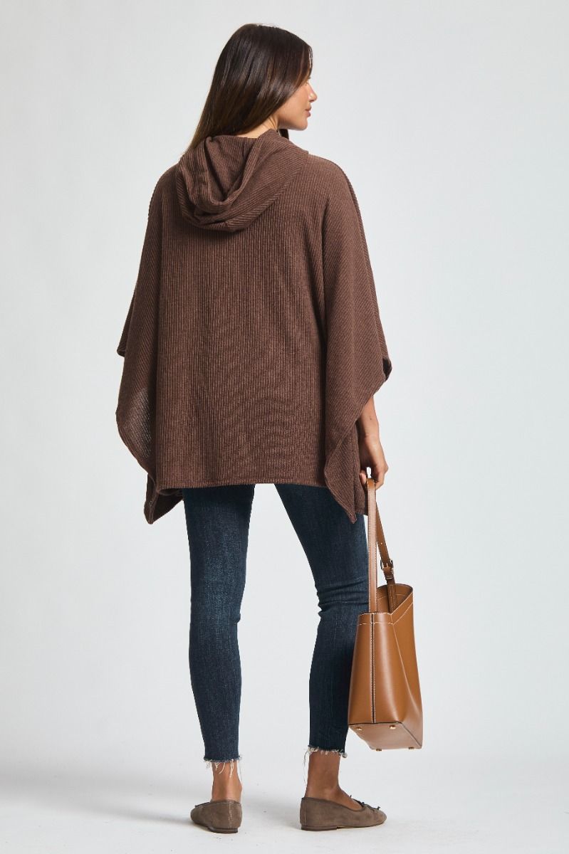 Chocolate Ribbed Knit Poncho Hoodie - Plus Size