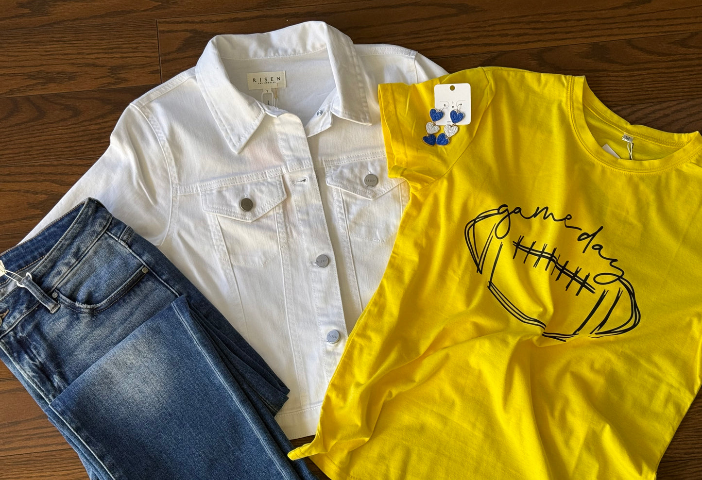 Whether you're heading to Neyland or your neighborhood tailgate, this Game Day tee brings all the energy with none of the fuss. Made with a super soft cotton-blend fabric, itโs lightweight, breathable, and perfect for layering up or wearing solo. The bold football graphic and game day script make it a standout piece for every proud fan (and every cute snack-bringer ๐).