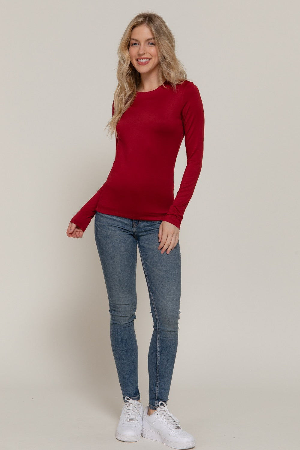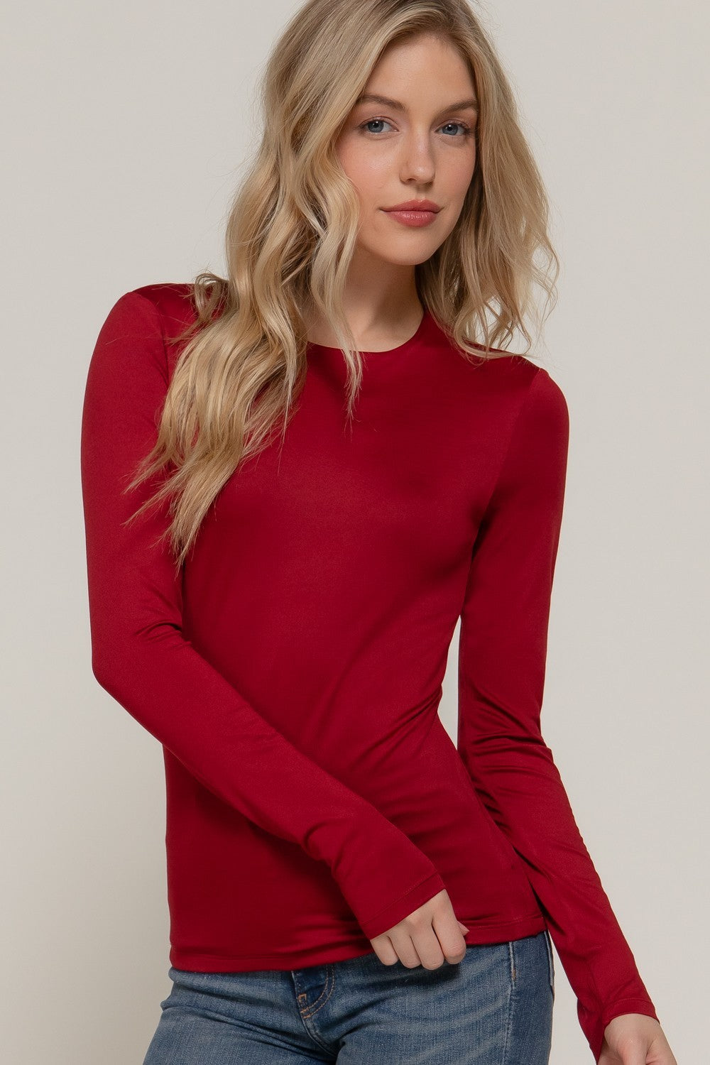 Everyday Essential Long Sleeve Double Layer ITY Knit Top – Black, Burgundy, Taupe, Off White, Navy