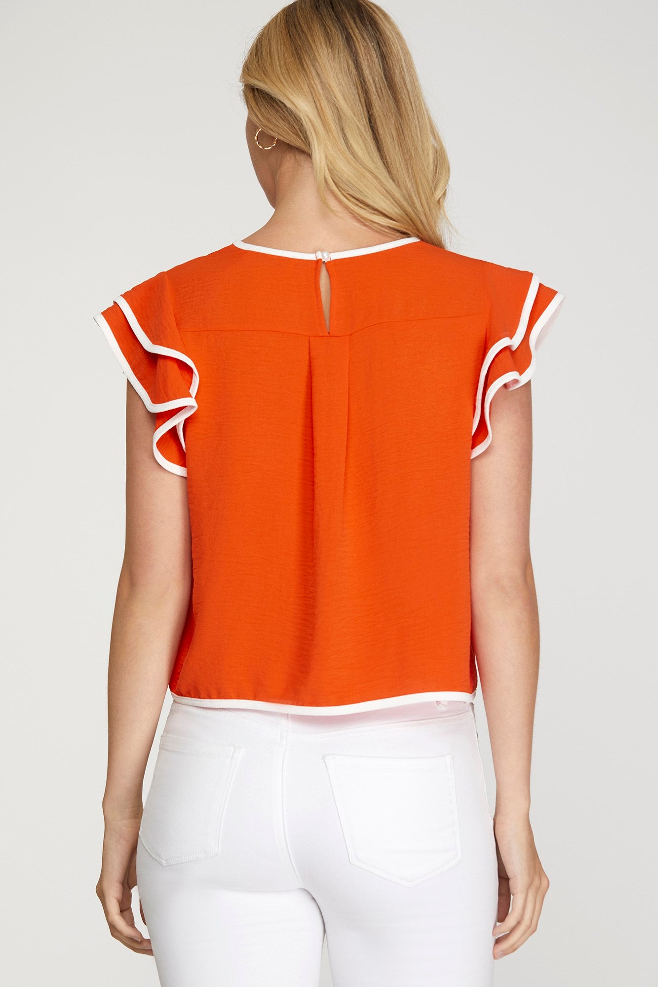 🧡 Game Day Ruffle Sleeve Contrast Piping Top