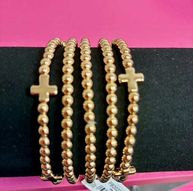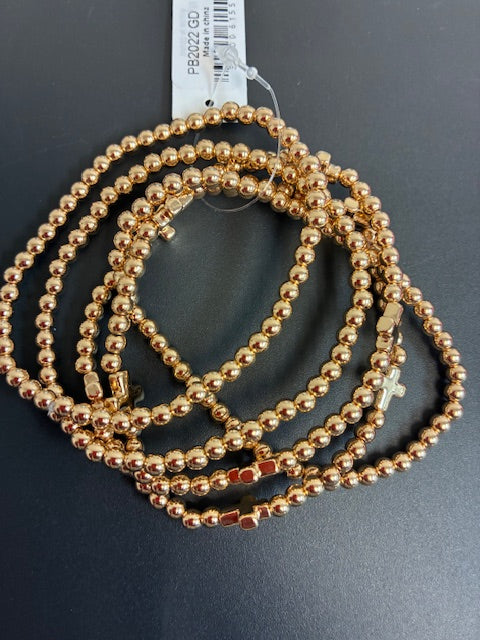 Make a statement with this stunning set of gold beaded stretch bracelets, each accented with dainty cross charms. Designed to be worn together, this set gives you the perfect stacked look without the guesswork.
