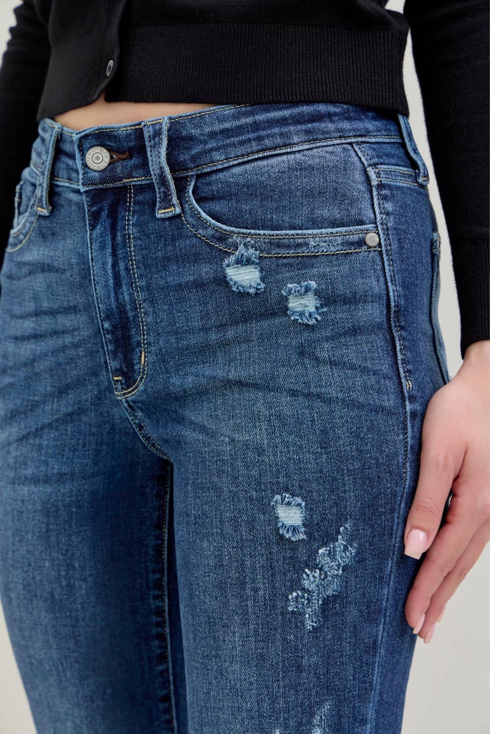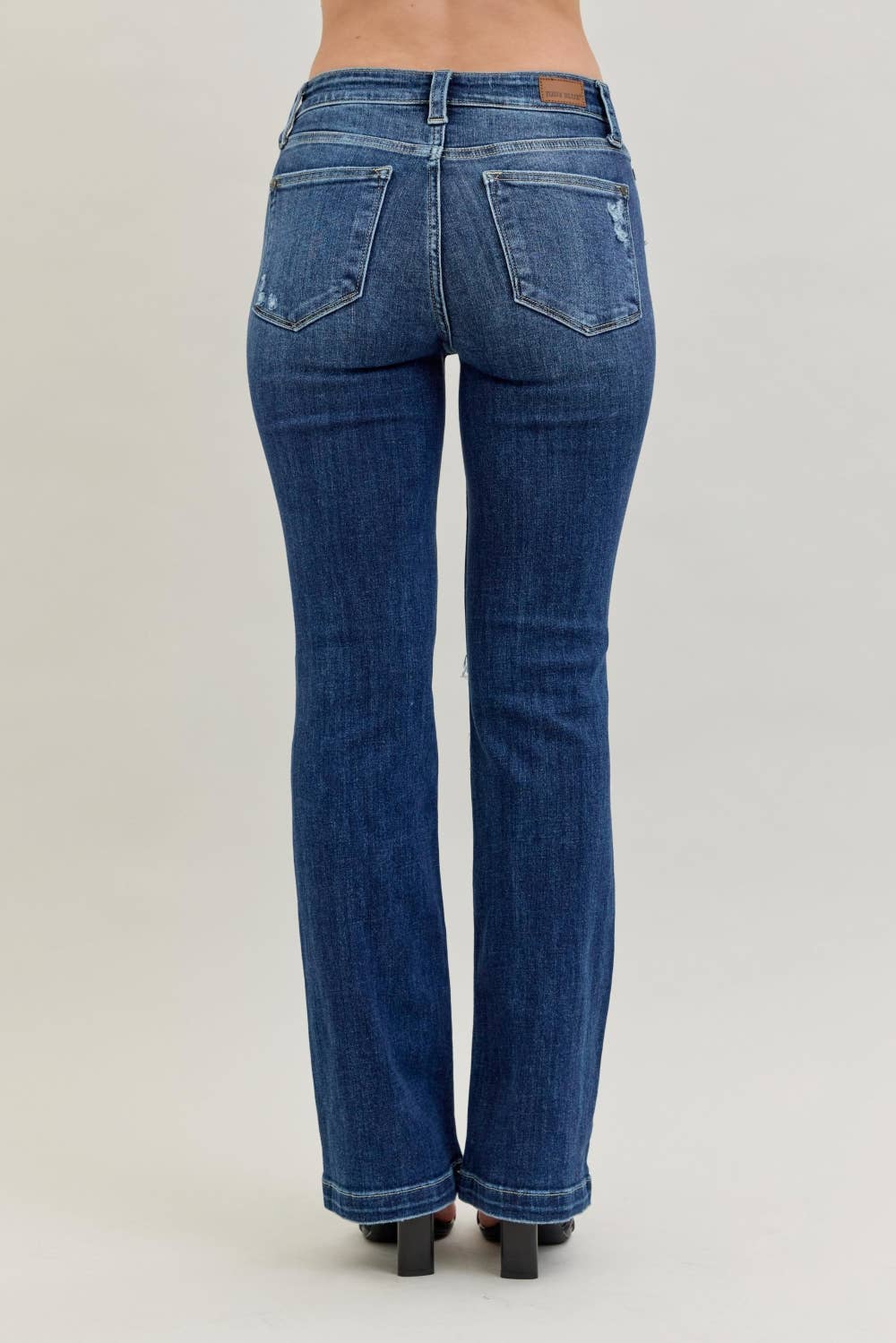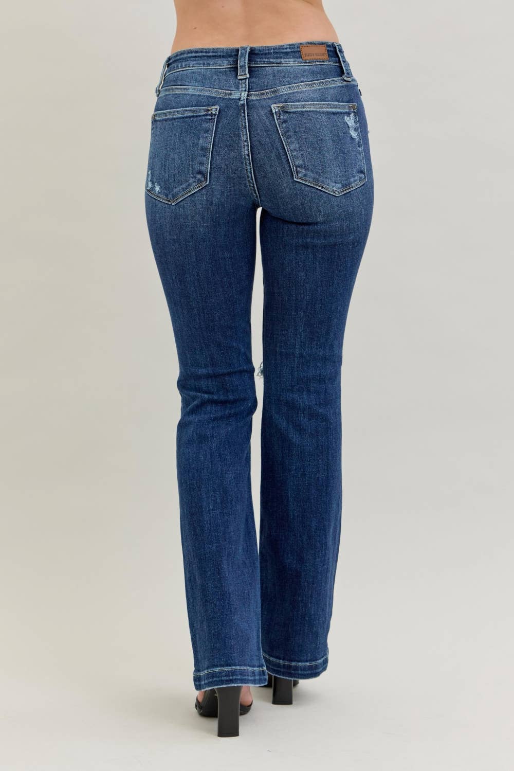 Judy Blue Mid-Rise Hand Sand & Destroy Bootcut Jeans – Distressed Dark Wash Denim