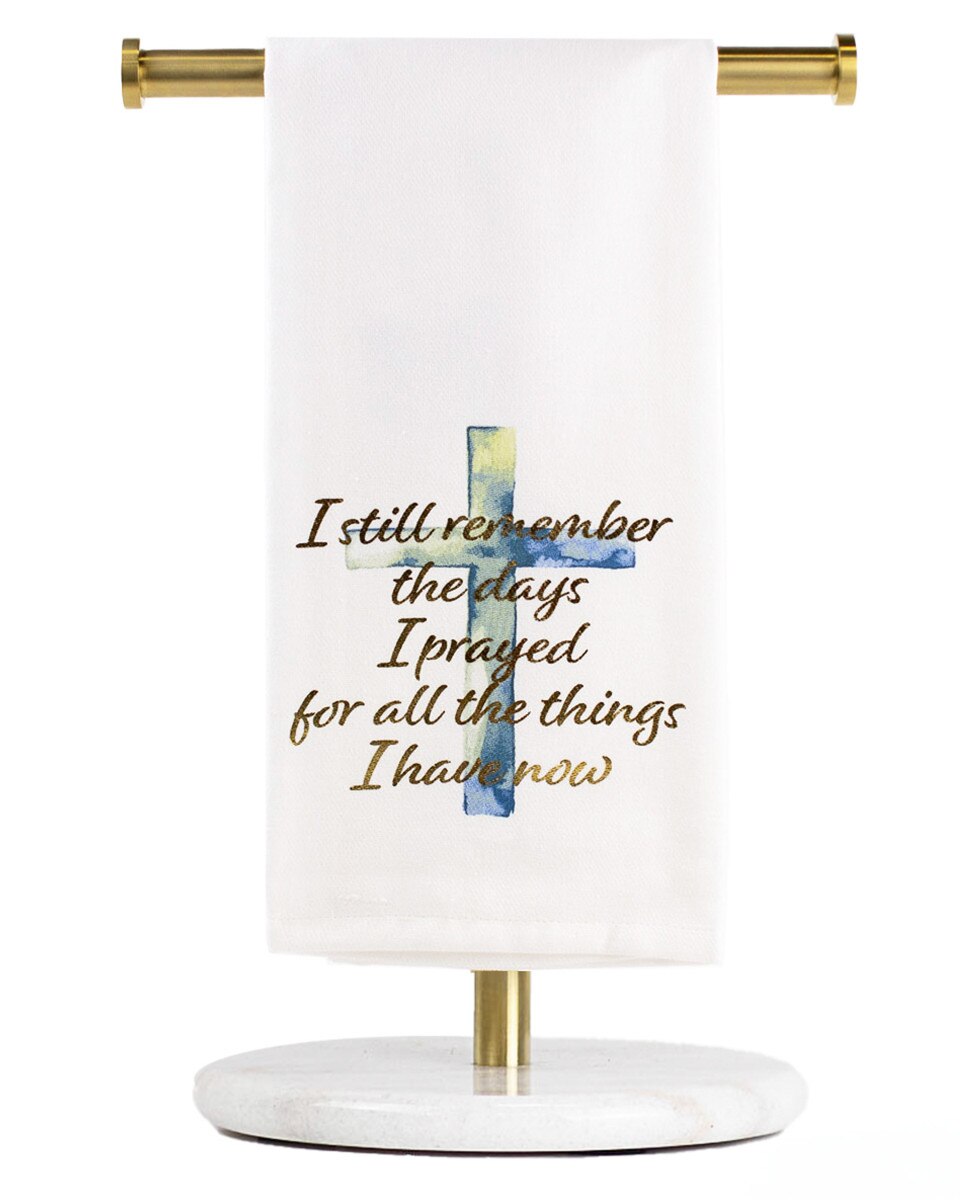 A gentle reminder of faith and gratitude, this beautifully designed hand towel features a watercolor cross and the heartfelt words: “I still remember the days I prayed for all the things I have now.” Perfect for your kitchen, bathroom, or as a meaningful gift, it’s a daily nudge to count your blessings and cherish answered prayers.