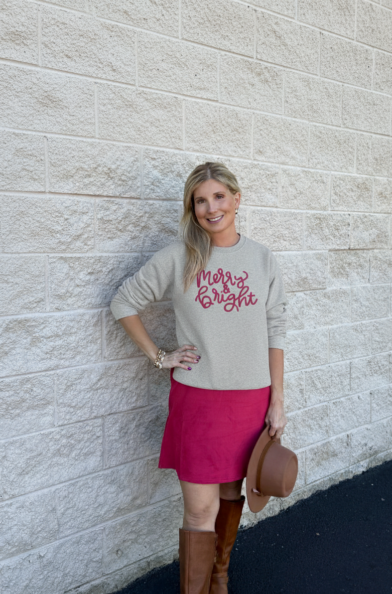 Merry & Bright Pink Script Sweatshirt