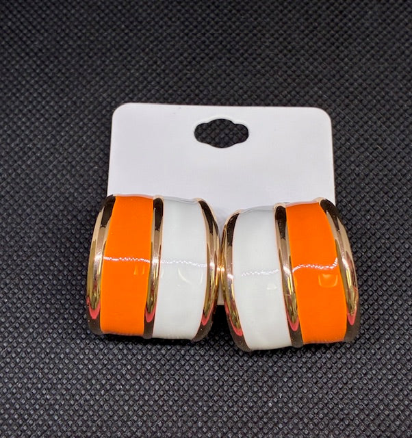 Bring the glam to game day, gorgeous! 🧡🤍 Our Game Day Bold Hoops are where southern sass meets sporty style. Featuring glossy orange and white enamel bands separated by luxe gold detailing, these statement hoops are made to stand out — just like you.