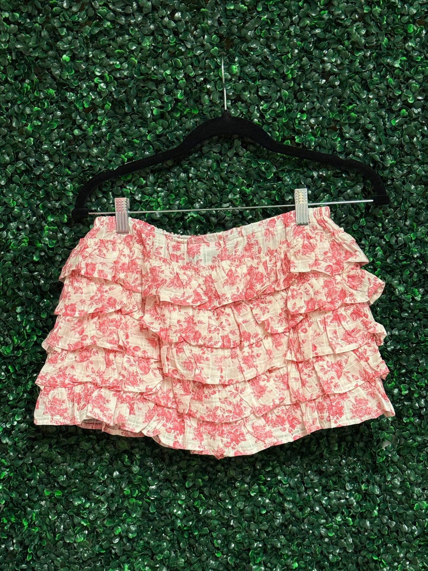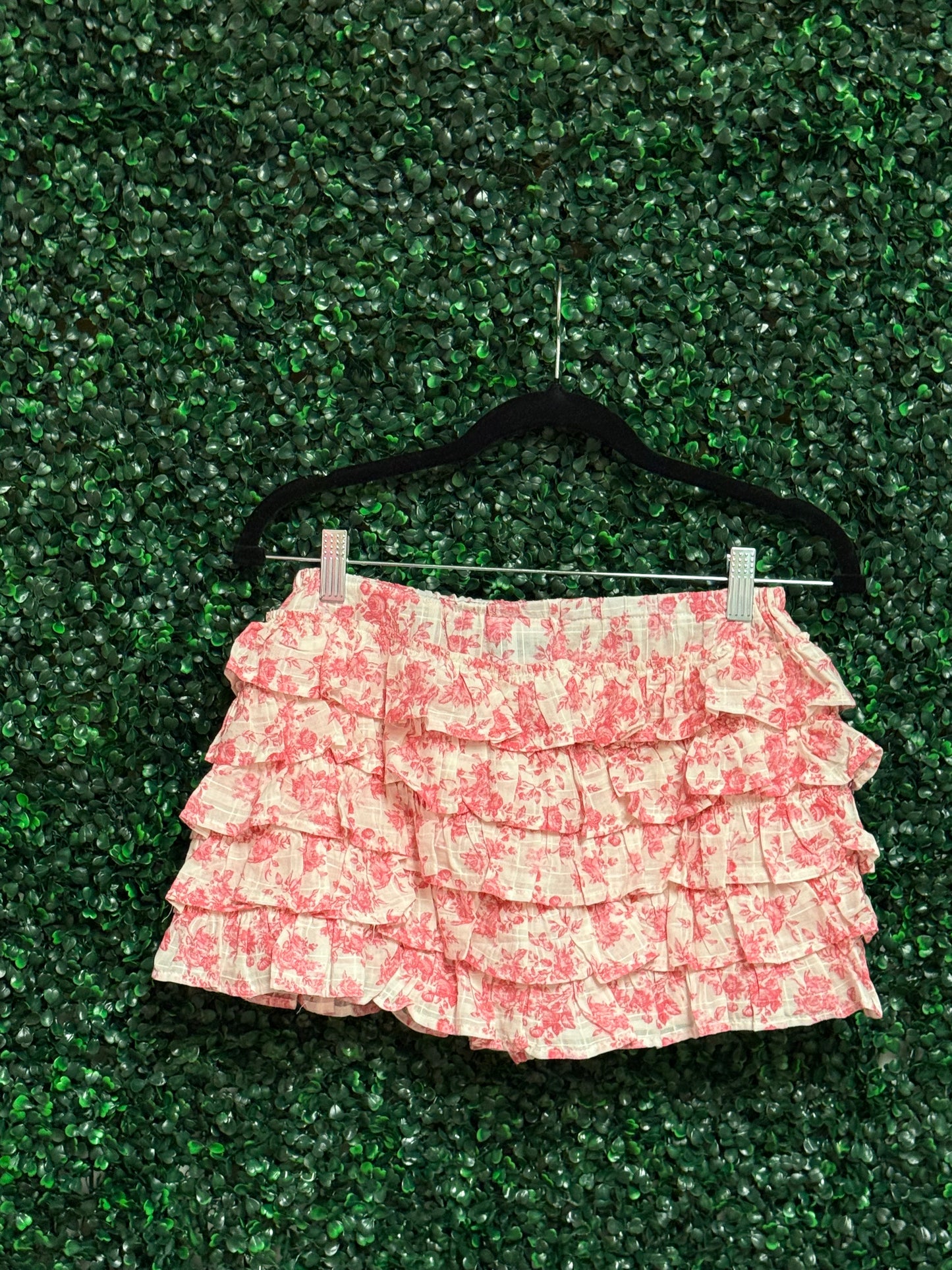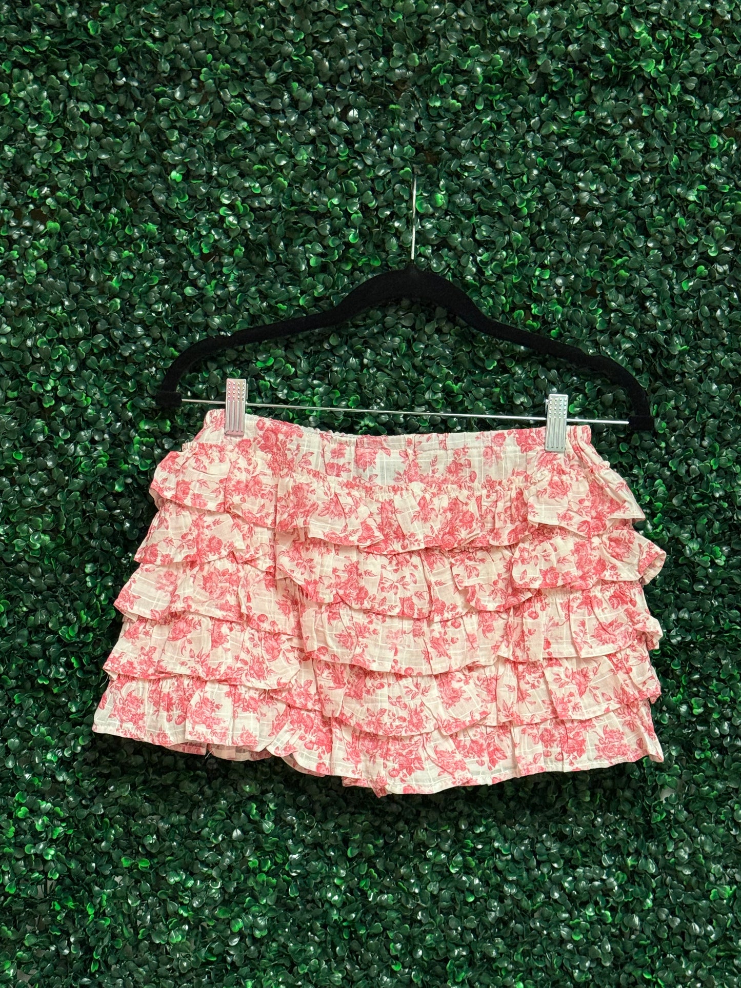 Pale Floral Tiered Ruffle Mini Skort