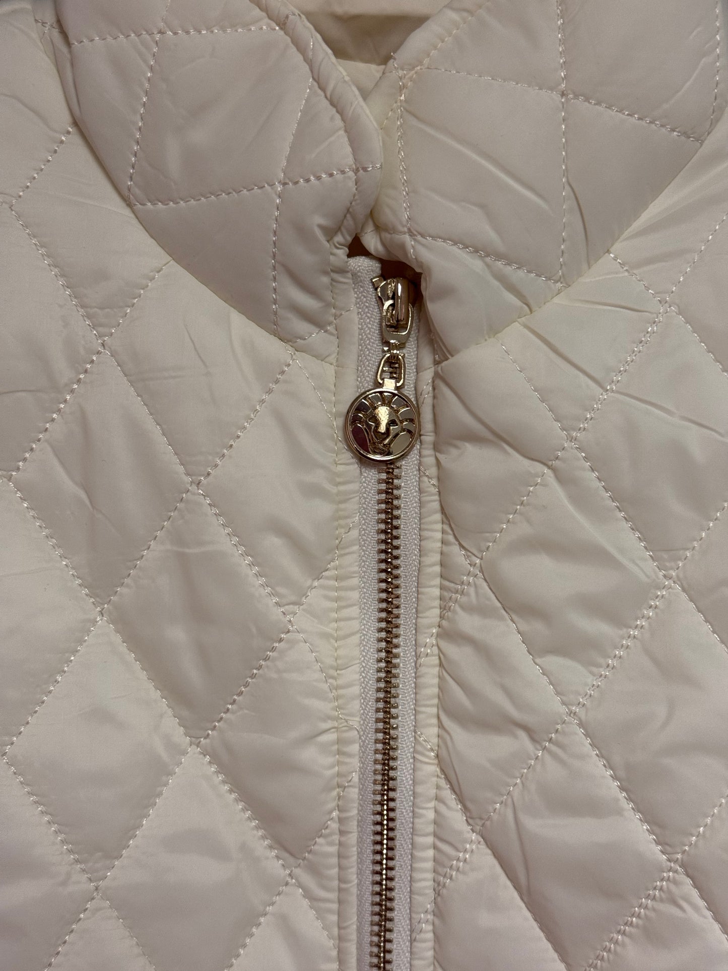 Designed with a flattering fit and functional patch pockets, it’s the perfect topper over your favorite long sleeve tees, flannels, or sweaters. With a soft quilted texture and gold zip detailing, this vest brings preppy polish and everyday comfort into perfect harmony.