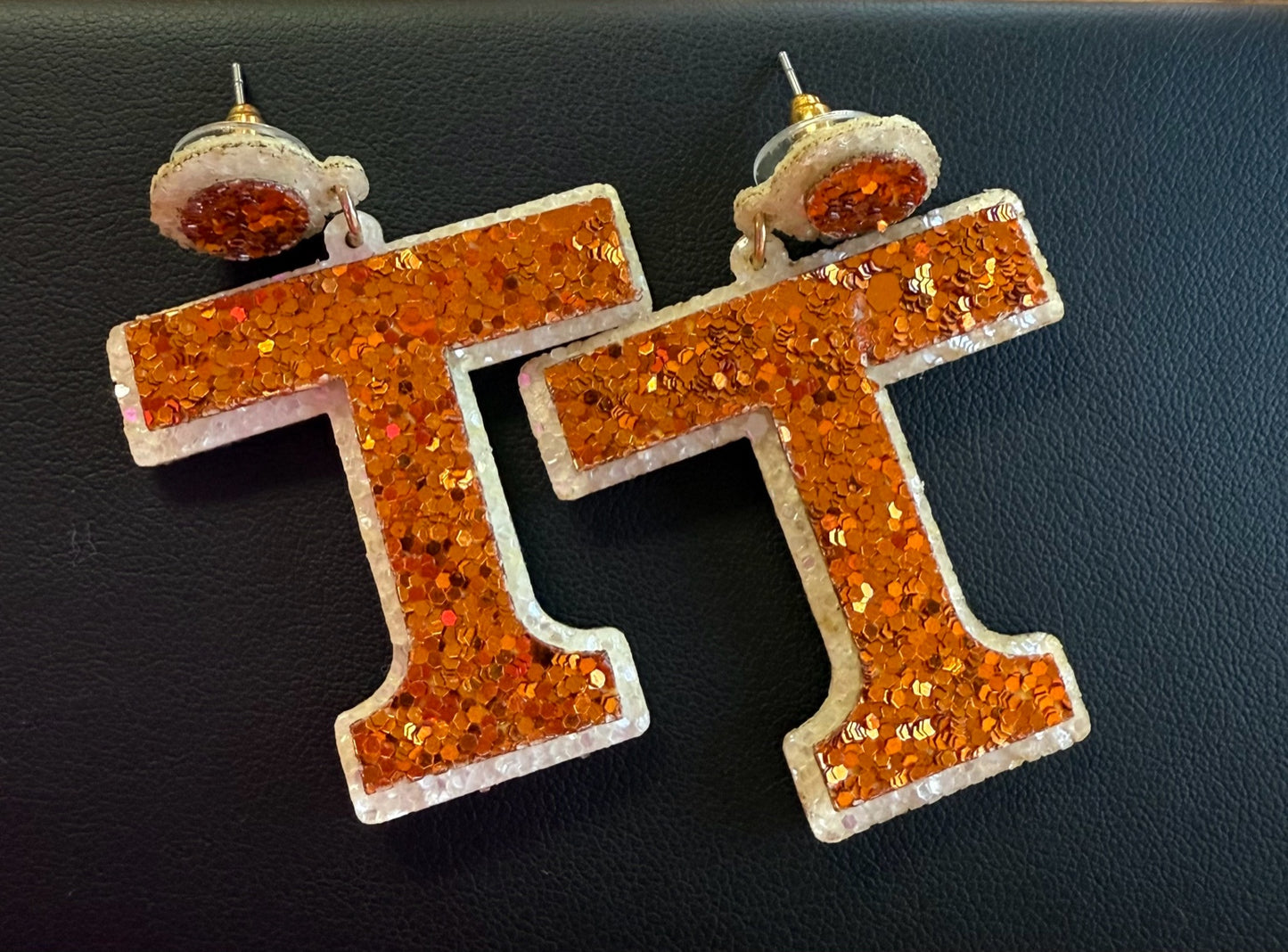 - ✨ Glitter Block T Drops – Orange glitter “T” earrings that shine as bright as Neyland.