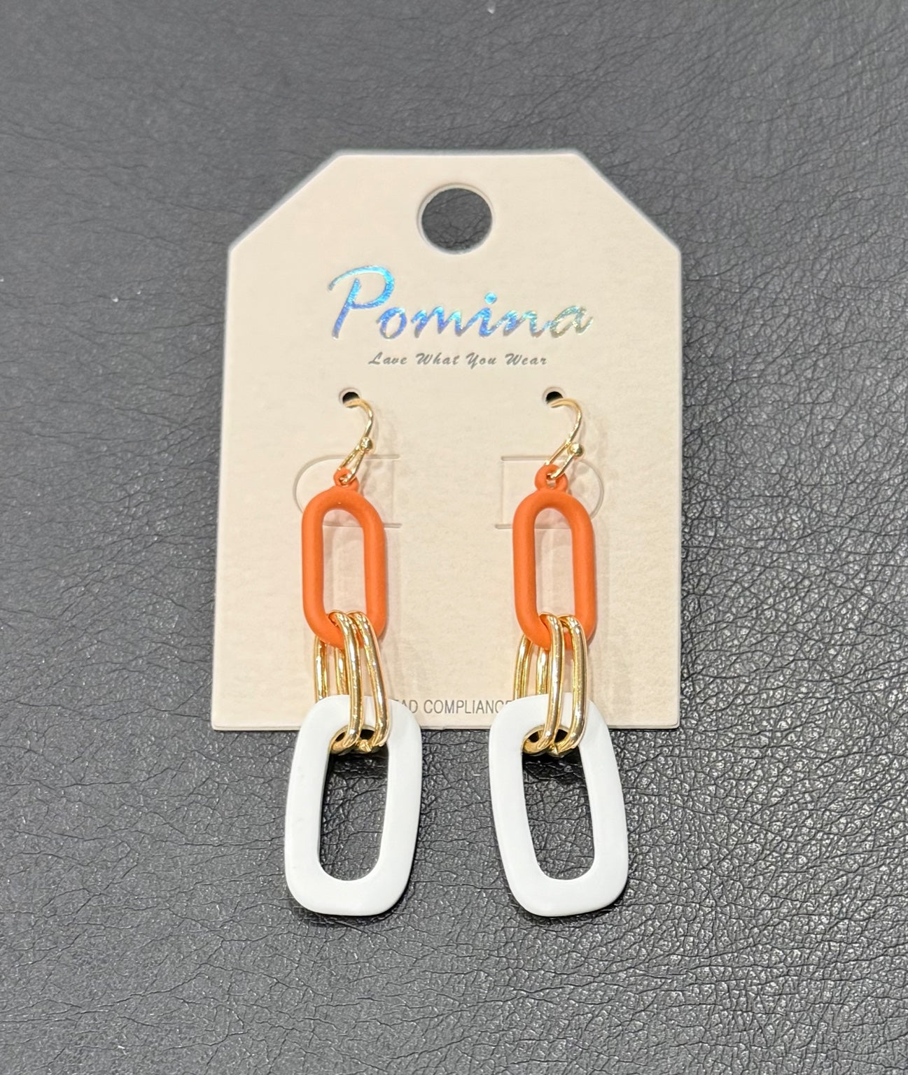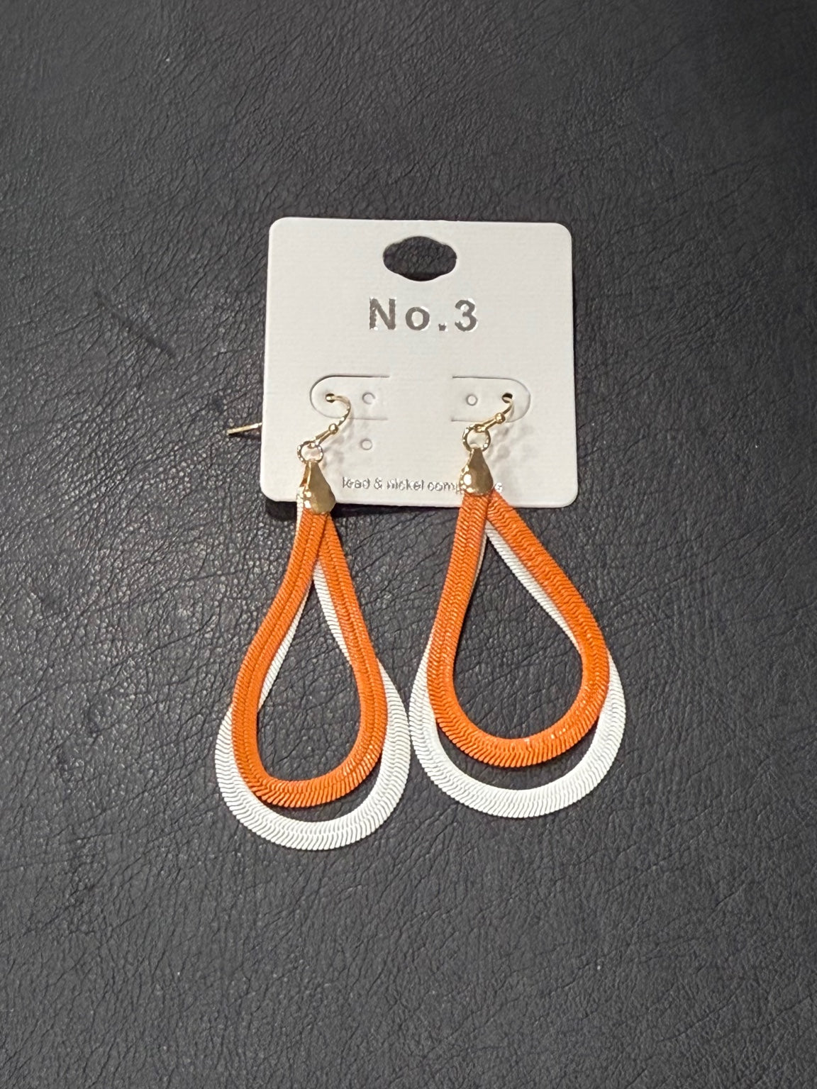 - 🔗 Orange & White Linked Hoops – Chic geometric links for a modern game day look.