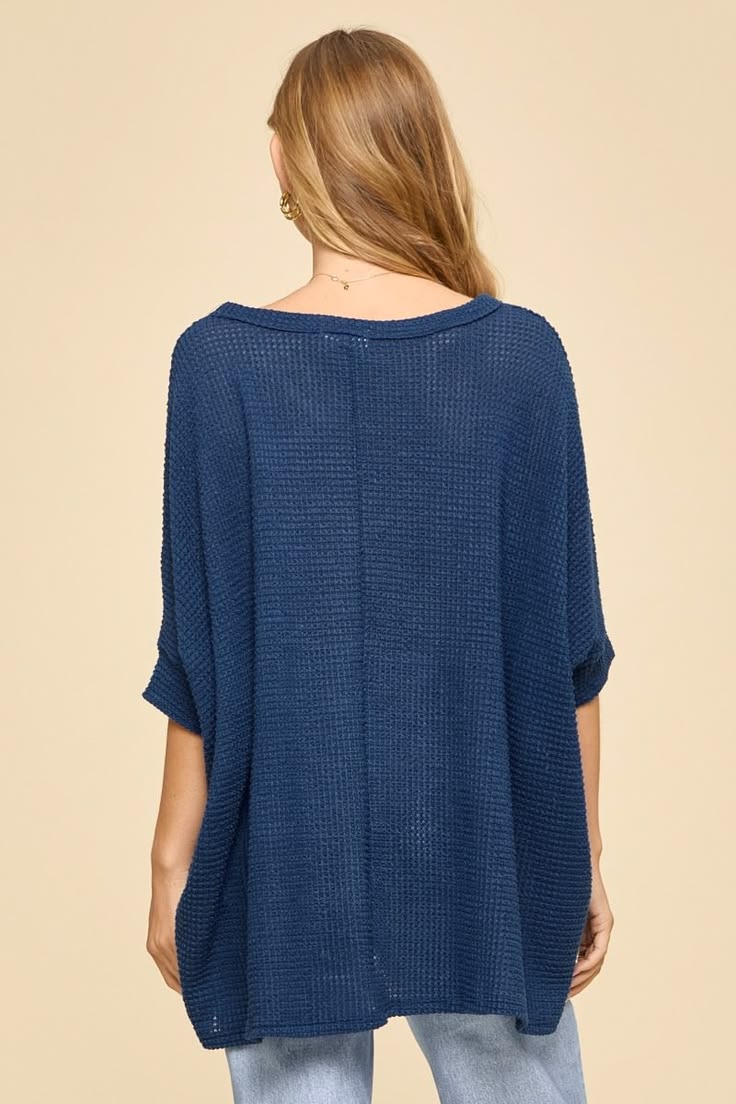 Elevate your everyday look with this ultra-soft navy crochet poncho, designed with a breathable, oversized fit for ultimate comfort. Its stretchy knit fabric and relaxed silhouette make it the perfect effortless layer for any season.