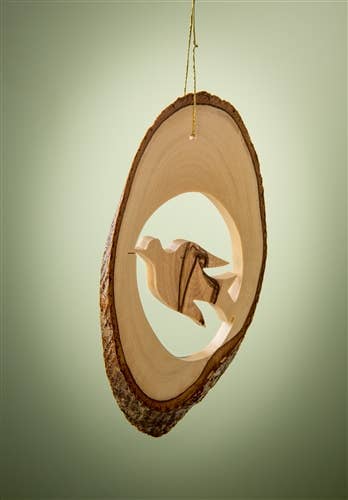 Bark Slice with Dove – 4" to 6" Handcrafted Olive Wood Ornament