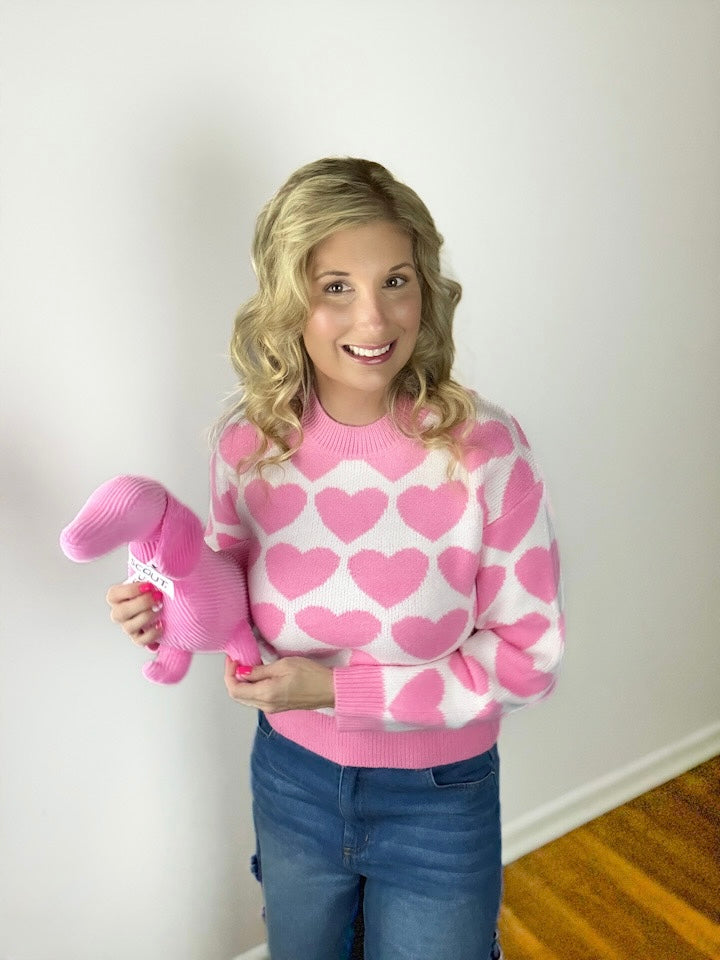 Light Pink Heart Jacquard Sweater