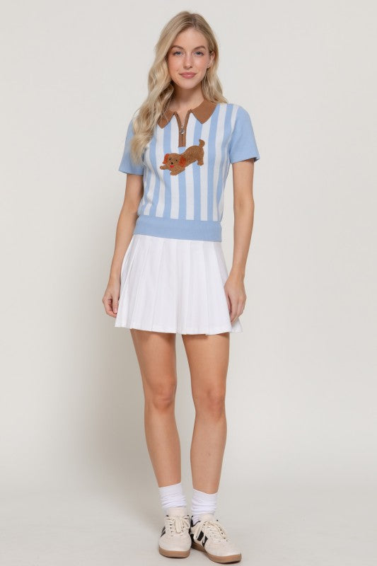 Preppy Dachshund Stripe Knit Polo