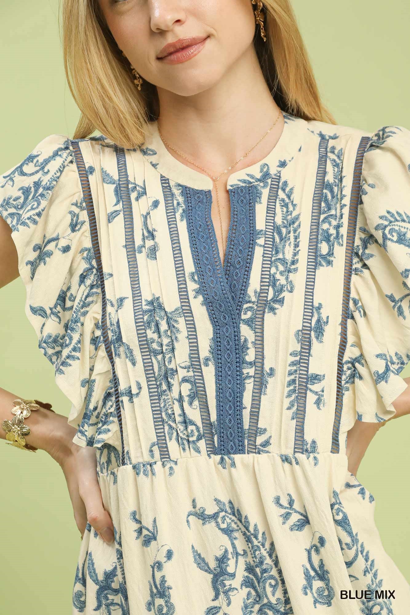 Embrace effortless romance in this tiered paisley midi dress, featuring delicate lace trim and feminine flutter sleeves. Crafted from a breathable rayon blend, it’s the perfect airy silhouette for garden parties and sun-drenched afternoons.