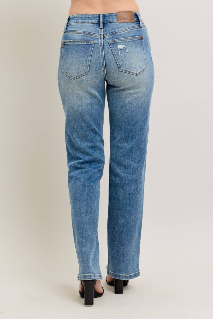 High Waisted Vintage Wash Front Seam & Slit Straight