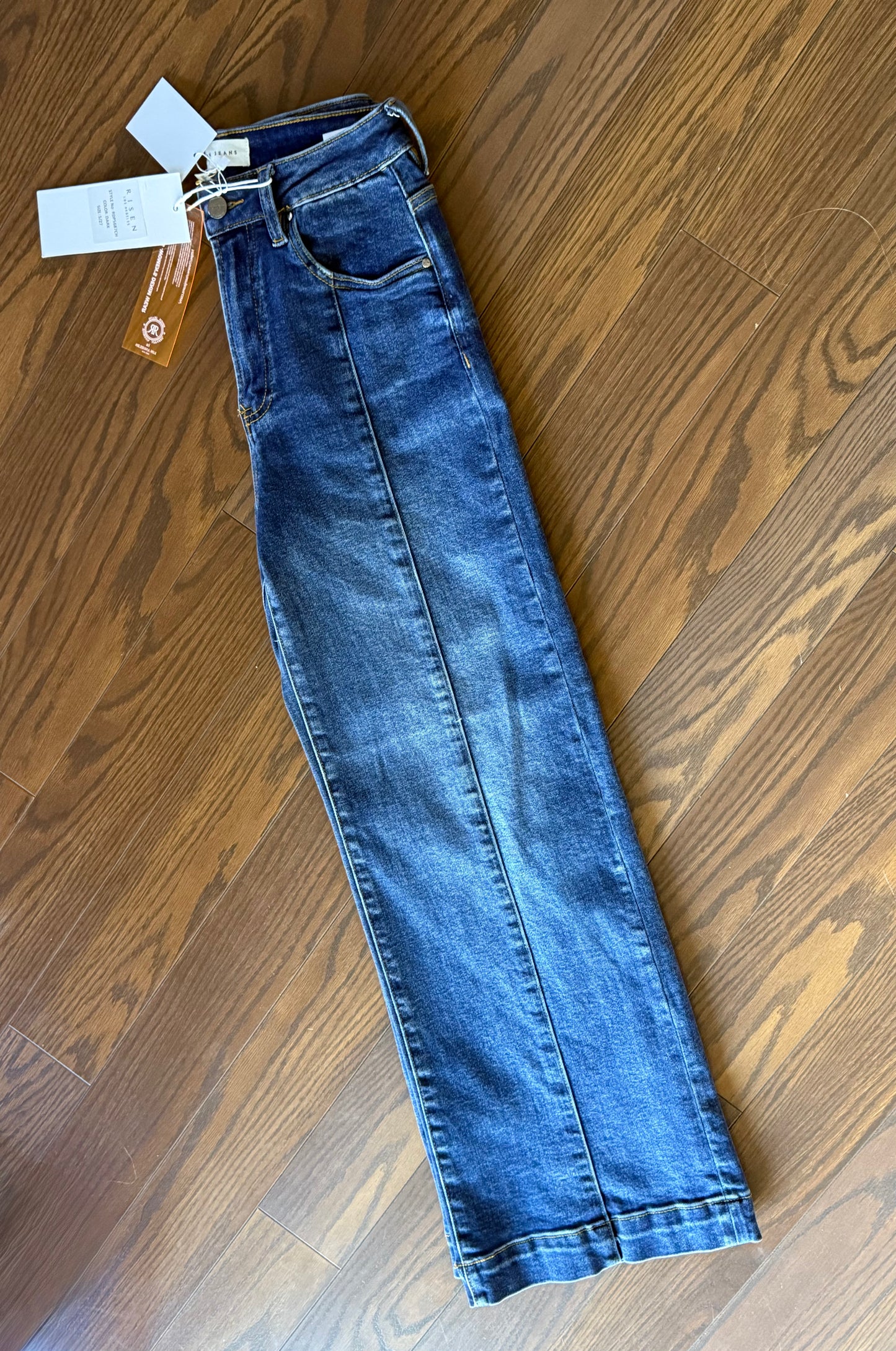 Elevate your denim style with these High Rise Dark Wash Cropped Wide Leg Jeans by Risen, a chic blend of comfort and sophistication. Designed with a flattering high-rise waist and a cropped wide-leg silhouette, these jeans bring a modern twist to timeless denim.