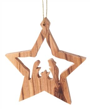 Light up your Christmas tree with the true meaning of the season through this Star with Nativity Ornament, handcrafted in Bethlehem by the Giacaman Family. Carved in the shape of the Star of Bethlehem with the Holy Family nestled inside, this ornament reminds us of the guiding light that led the world to Jesus.